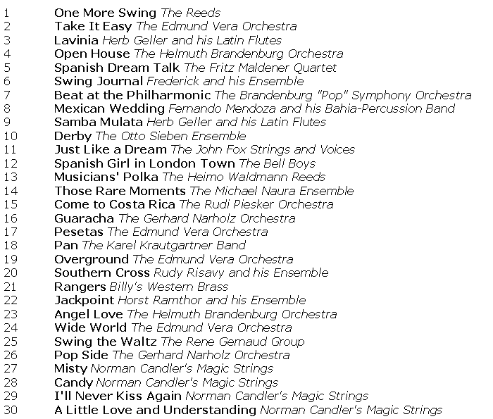 ECD 7311 A FISTFUL OF NARHOLZ A sparkling album featuring music culled from the archives of Germany's Sonoton production music library, brainchild of husband-and-wife team Rotheide and Gerhard Narholz. The CD concludes with four bonus commercial tracks from the Norman Candler Magic Strings |